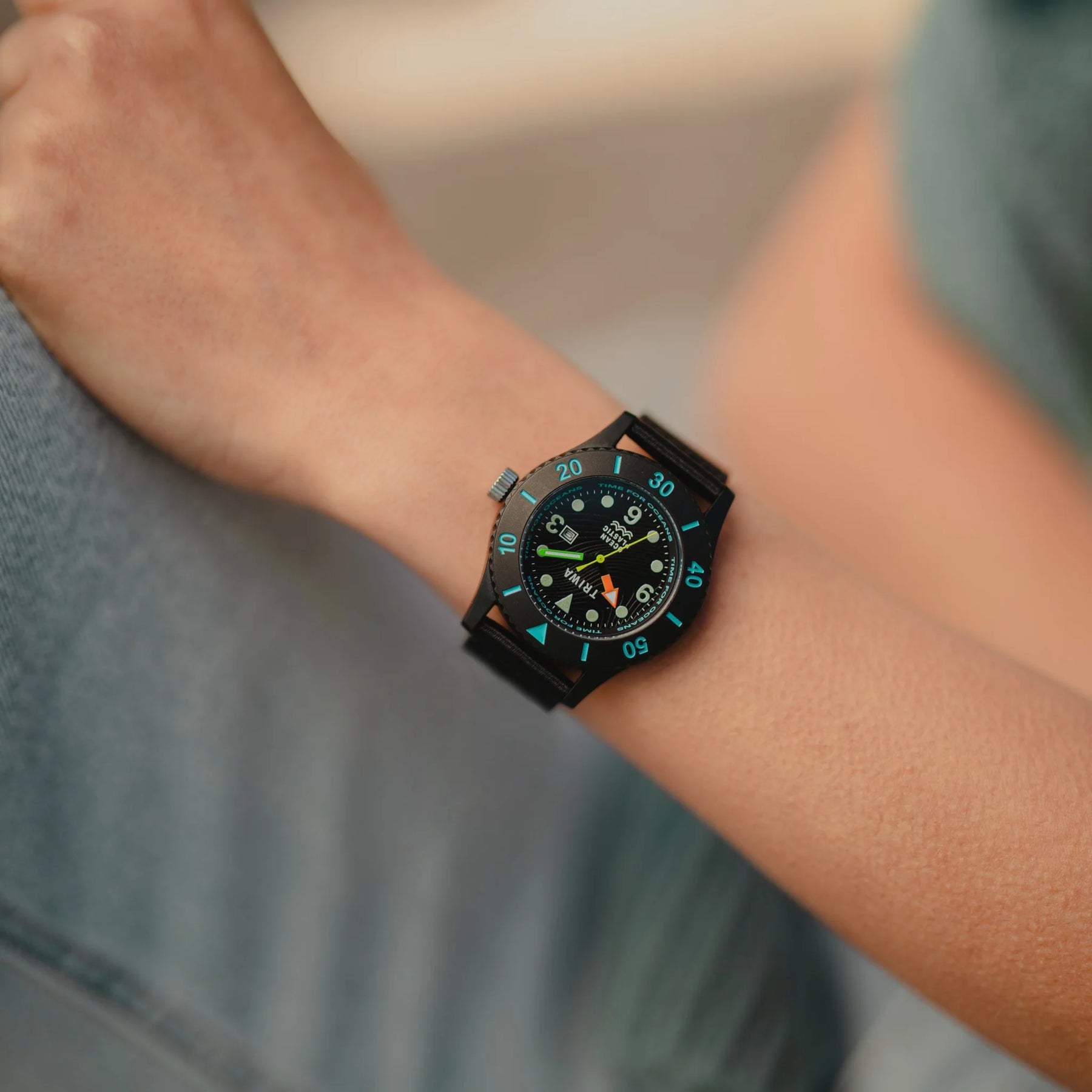 It has a three-dimensional ocean-patterned dial, large luminous markers and hands, and a rotating bezel — everything you need for your underwater adventures.
