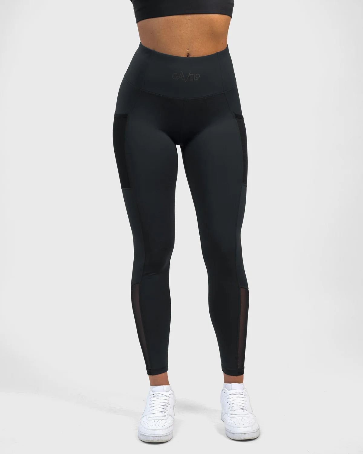GAVELO Empower Pocket Tights Black are black training tights made from high-quality fabric, featuring mesh pockets on the outer thighs. The pockets are discreet when not in use. With a high waist that offers a comfortable hold, these tights are designed to flatter your figure while delivering top functionality and quality.