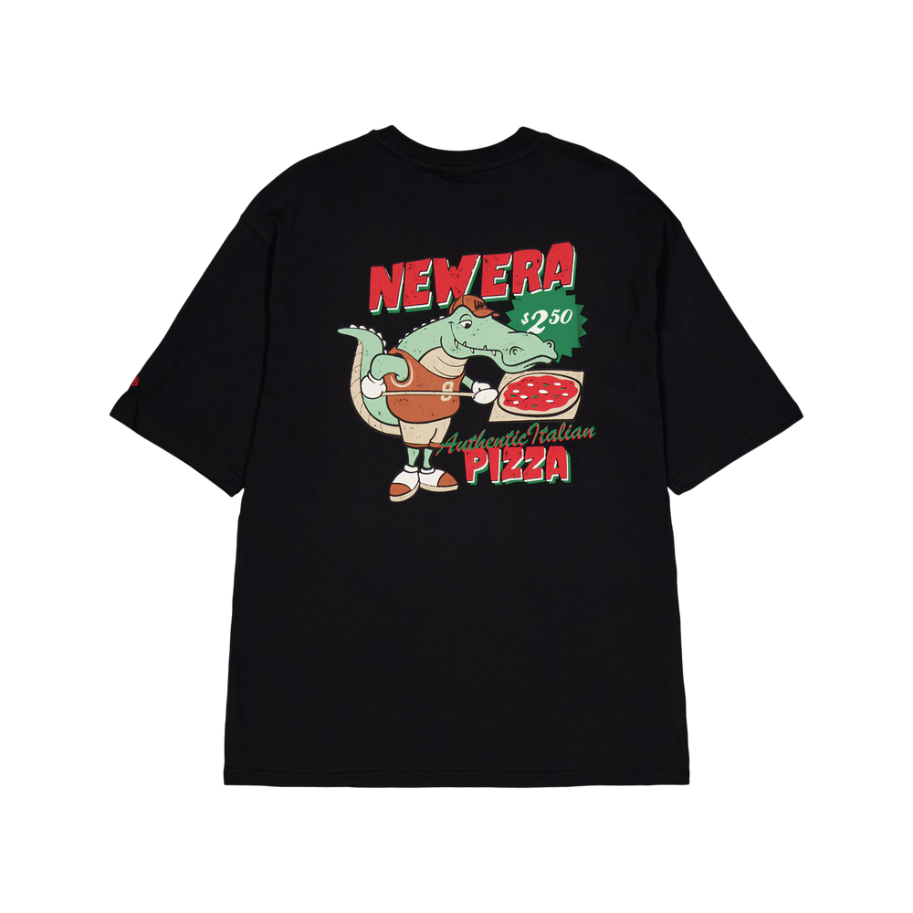 Ta prevelika majica s kratkimi rokavi New Era Pizza aligator ima logotip dediščine na levem prsnem košu, zastavo New Era na levem rokavu in živahen aligator z grafiko pice na hrbtu. Ta majica s kratkimi rokavi je izdelana iz 80 % bombaža in 20 % recikliranega bombaža in ima prevelik kroj za dodatno udobje in stil.